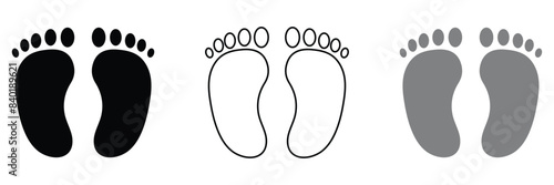 Vector footprints, adult footprints and baby footprints on white background. Vector Illustration.