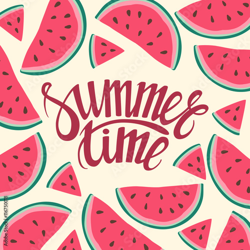 Vector frame background card Summer Time Seamless background with watermelon slices.