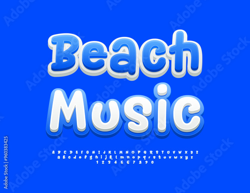 Vector funny banner Beach Music. Set of playful Alphabet Letters and Numbers. Creative handwritten Font.