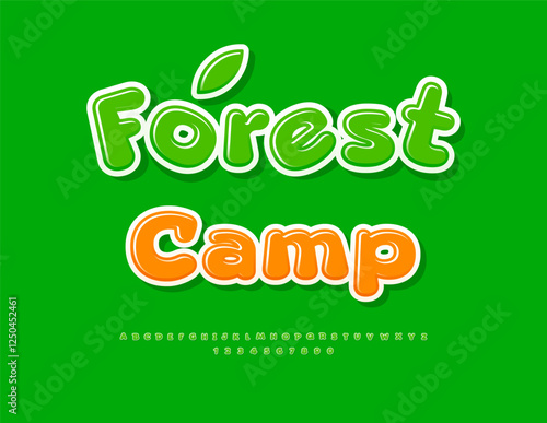 Vector Funny template Forest Camp. Cute Children Font. Green set of Digital Alphabet Letters and Numbers.