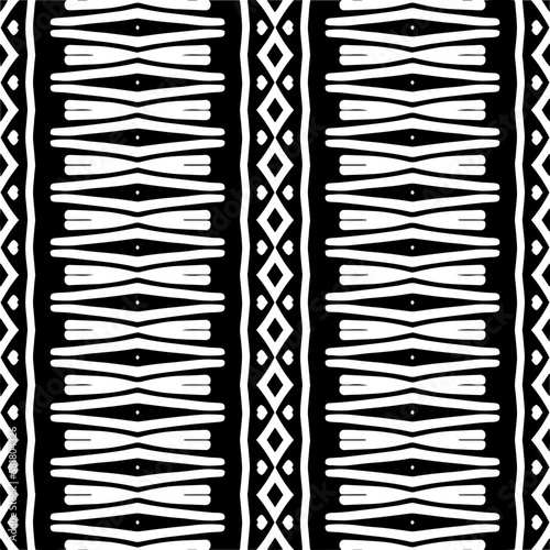 Vector geometric ornament in ethnic style. Seamless pattern with abstract shapes. Black and white geometric wallpaper. Repeating pattern for decor, textile and fabric.Abstraction art.