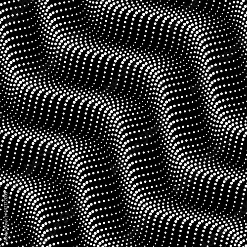 Vector geometric seamless pattern. Monochrome geometric repeating pattern. Waves from dots.