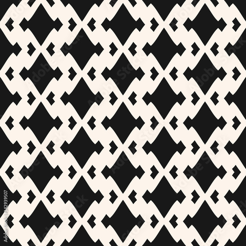 Vector geometric seamless pattern with rhombuses, diamond shapes. Argyle texture. Tribal ornament, folk motif. Simple black and white abstract background. Repeat design for textile, wallpaper, carpet