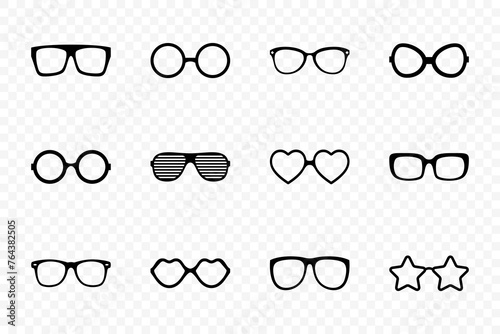 Vector Glasses Model Icons. Man, Women Frames, Different Shapes, Cutout Sunglasses. Monochrome Eyeglasses Isolated. Eyewear Silhouettes