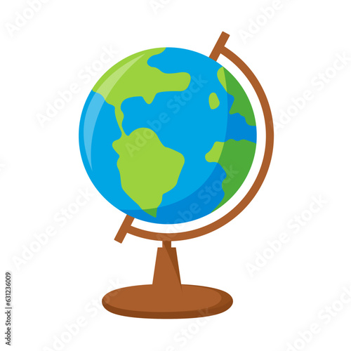 Vector globe of the world. Blue globe. School globe. Isolated on a white background. Flat style.