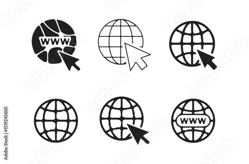 Vector Globe with WWW and Mouse Click Icon set. Victor illustration eps 10