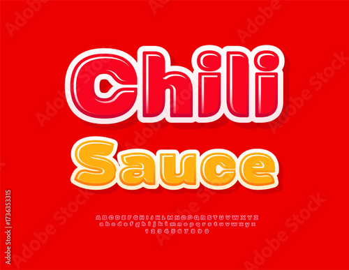Vector Gourmet sticker Chili Sauce.Glossy Red Font. Stylish Alphabet Letters and Numbers set