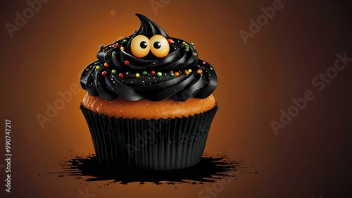 Vector graphic of a Halloween themed cupcake perfect for party invitations and menu designs.