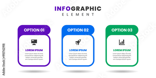 Vector Graphic of Infographic Element Design Templates with Icons and 3 Options or Steps. Suitable for Process Diagram, Presentations, Workflow Layout, Banner, Flow Chart, Infographic.