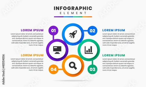 Vector Graphic of Infographic Element Design Templates with Icons and 4 Options or Steps. Suitable for Process Diagram, Presentations, Workflow Layout, Banner, Flow Chart, Infographic.