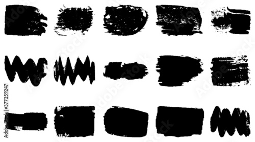 Vector grunge brush, spots. Abstract brush strokes with a dry brush. Large set of ink blots. Black backdrops, patterns on white background
