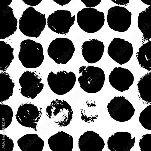 Vector hand drawn black and white seamless pattern in grunge style. Brush stroke, geometric shapes ornament illustration. Good for packaging paper, wallpaper and print design, etc.