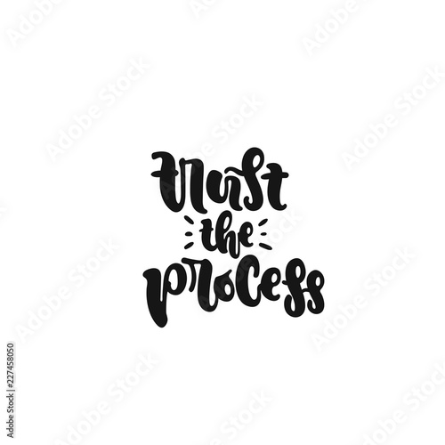 Vector hand drawn illustration. Lettering Trust the process. Idea for poster, postcard.