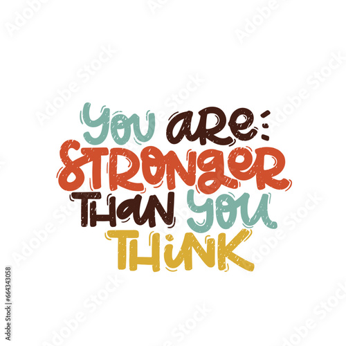 Vector handdrawn illustration. Lettering phrases You are stronger than you think. Idea for poster, postcard. Inspirational quote.