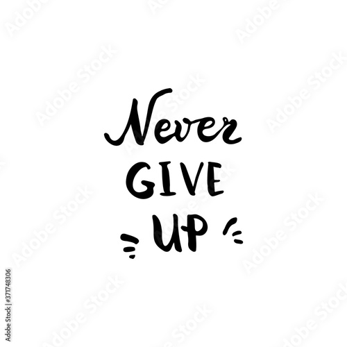 Vector handwritten motivational text Never give up. Vector brush lettering phrase.