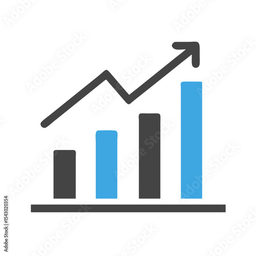 Vector icon of a bar chart with an upward arrow, symbolizing financial growth, success, and business analytics. Transparent background