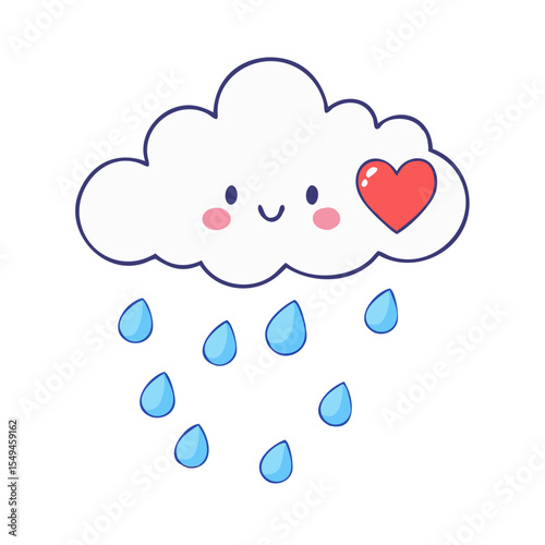 Vector icon of a cute cloud with a heart and raindrops, symbolizing weather, love, and romantic rain concept. Isolated on a transparent background