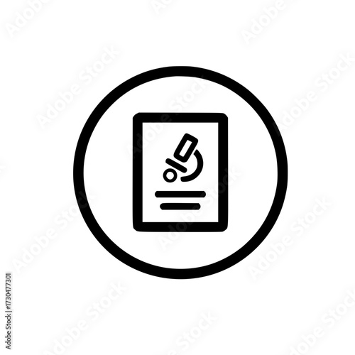 Vector icon of microscope with text document for scientific research and laboratory report illustration