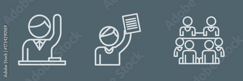 Vector icon sheet with teacher, student holding paper, and students in circle in chalkboard style – Great for classroom teaching, group learning, or educational materials