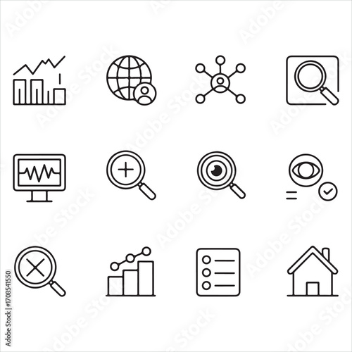 Vector icons for web design including business, communication, and home symbols