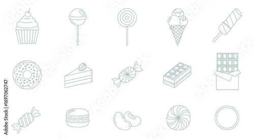 Vector Icons Set of Assorted confectionery and dessert outline icon set on white background. EPS Editable