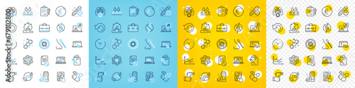 Vector icons set of Timer, Recovery data and Waterproof line icons pack for web with Clipboard, Vaccination passport, Diagram chart outline icon. Electronic thermometer, Music. Vector