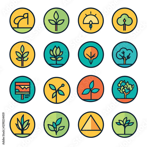 Vector icons set of tree, plant, sprout, nature, leaf and eco elements