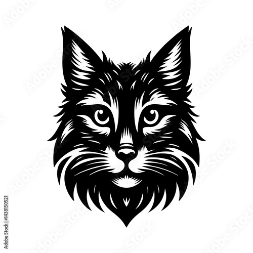 Vector illustration art of a wild cat and fox head, a mammal predator, as a black and white cartoon animal mascot symbol