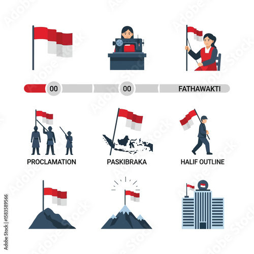 Vector illustration depicting Indonesian independence day celebration elements and historical