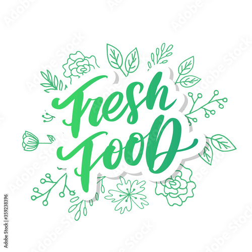 Vector illustration, food design. Hand lettering for restaurant, cafe menu, farm and shop. Elements for labels, logos, badges, stickers or icons. Calligraphic and typographic collection. Fresh food