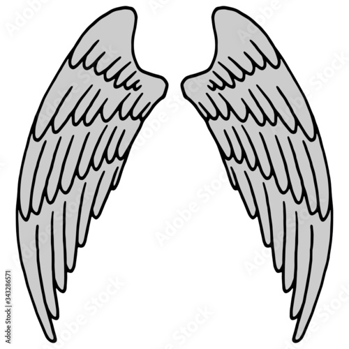 vector illustration, linear drawing of a pair of wings in black and white, isolate, design elements, doodle style