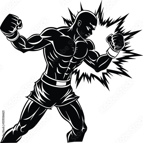 Vector illustration of a boxer, Minimalist Fighter Silhouette Vector: Bold Boxing Pose for Sports Logos