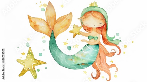 Vector illustration of a cute beautiful mermaid. Nursery art for baby.