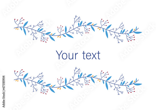 vector illustration of a frame for text with various tree branches with leaves and berries