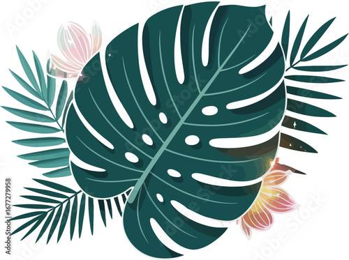 Vector illustration of a green leaf with wings, a symbol of nature and art