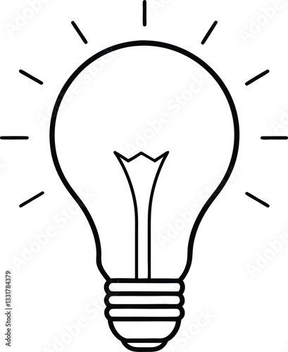 Vector illustration of a lightbulb icon with rays representing an idea in a simple black and white design. Editable stroke.