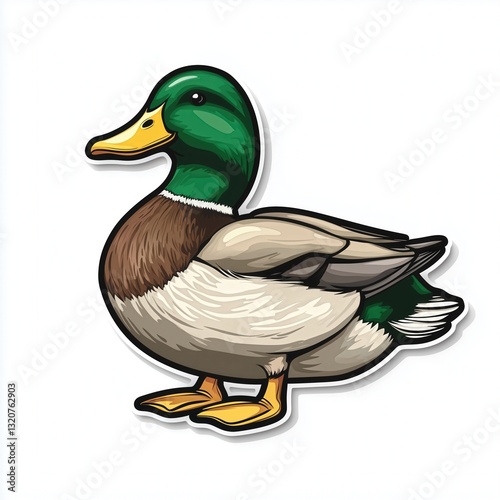 Vector Illustration of a Mallard Duck with Sticker Logo on White Background
