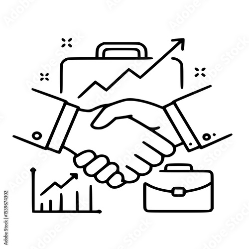 Vector illustration of a professional briefcase with a chart arrow or upward graph, outline style - business growth and success concept
