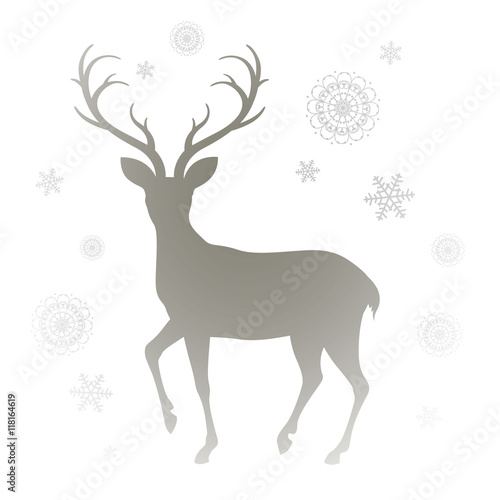 Vector Illustration of a Reindeer Silhouette and Snowflakes