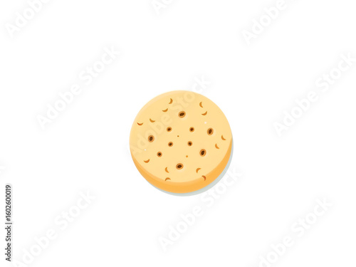 Vector illustration of a round sandwich cookie with holes on top, yellow baked texture, isolated on white background. Generative AI