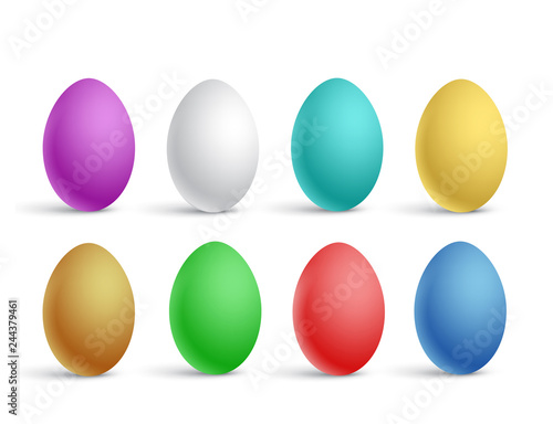 Vector illustration of a set of realistic multicolored easter eggs on a white background