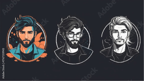 Vector illustration of a smiling cartoon men's face with black hair, a character design in fashion style