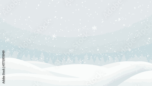 Vector illustration of a winter background with a flat design style, featuring a minimalist aesthetic, a palette of icy blues and whites, and bold lines,