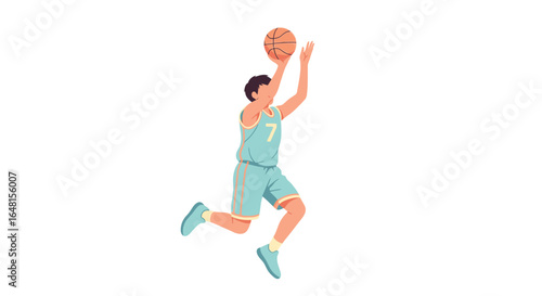 Vector Illustration of Basketball Player Shooting Ball in Modern Flat Style