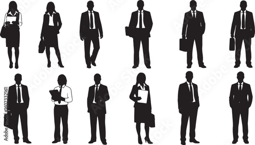 Vector illustration of business people silhouettes in various poses including men and women standing and walking, business, people, vector, silhouettes, illustration, men, women, standing, walking, co