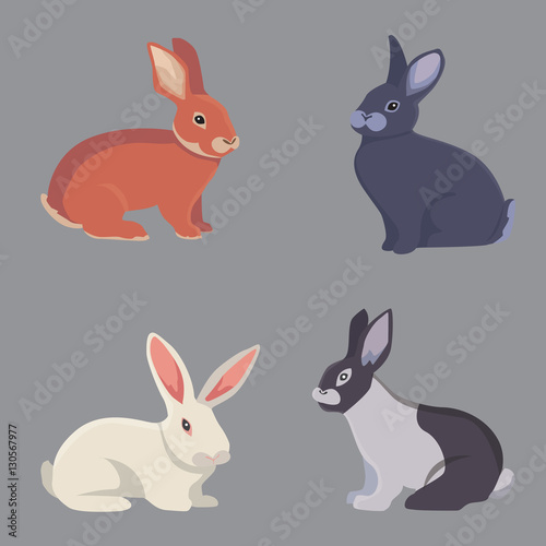 vector illustration of cartoon rabbits different breeds. Fine bunnys for veterinary design