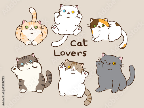 Vector Illustration of Cute Cartoon Cat Characters on Isolated Background