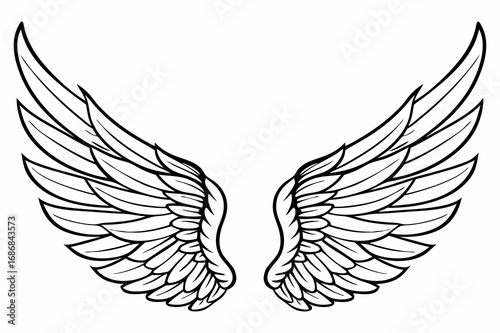 Vector Illustration of Detailed Angel Wings Line Art