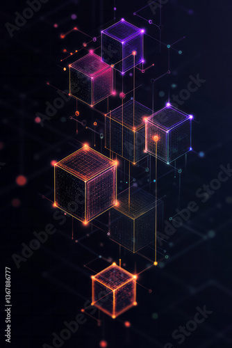 Vector illustration of digital cubes rearranging and streaming into charts and dashboards,