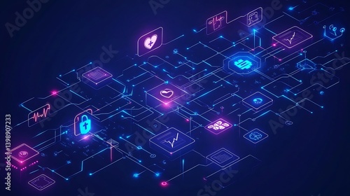 Vector illustration of digital healthcare platforms connected health services emergency care virtual consultations and realtime health monitoring using clean and vibrant icons